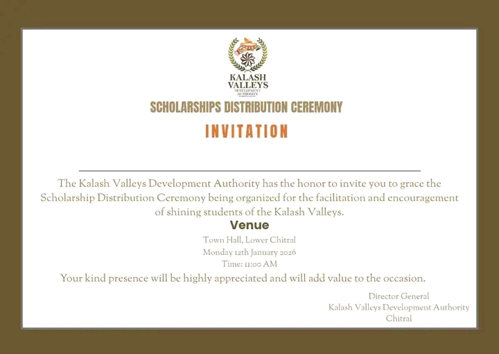 Please Join the Education Scholarship distribution Ceremony for Kalash valleys on Monday 12 January 2026 at Town Hall Chital.