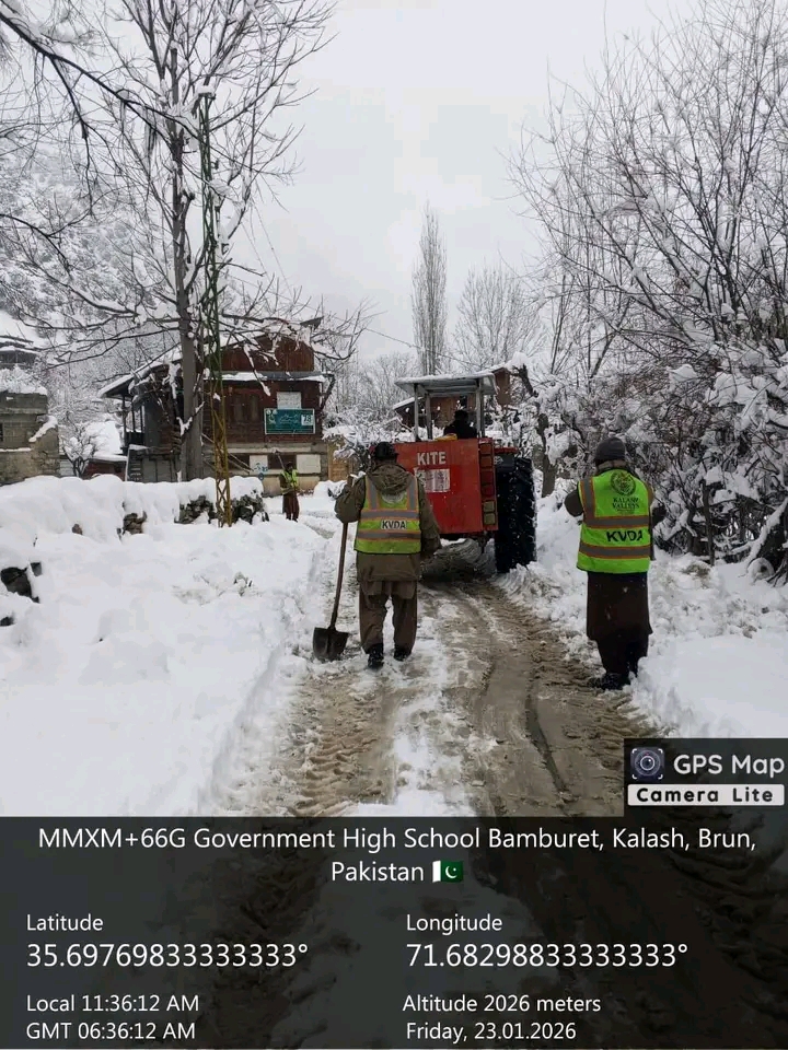 وزیراعلیٰ خیبر پختونخوا کے وژن اور چیف سیکریٹری خیبر پختونخوا کے گڈ گورننس روڈمیپ کی روشنی میں کالاش ویلی ڈویلپمنٹ اتھارٹی کی مشینری وادیٔ کالاش بمبوریت میں سڑکوں سے برف ہٹانے میں